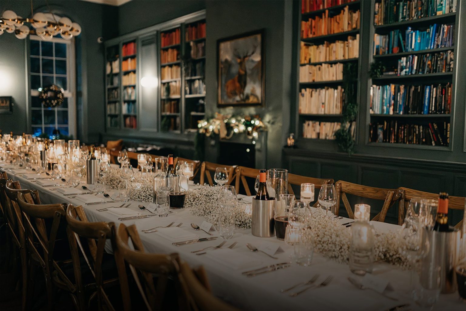 Hosting a celebration with up to 20 guests? Our much-loved Library is ideal. With beautiful wood panelling and a wall-to-wall bookshelf, it’s a dreamy backdrop—and guaranteed to make your micro wedding special. The space is large enough for your guests to feel comfortable without it feeling empty. For smaller parties, it’s just right.