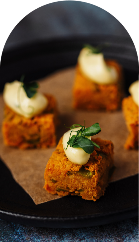 Our canapés and bowls are the perfect flourish, ensuring your guests feel well cared for as your day progresses. Choose from three to six canapé options or, if you’re looking for something heartier, we recommend our selection of bowls. These can comfortably be eaten standing. Three bowls per person would be comparable to a main course.