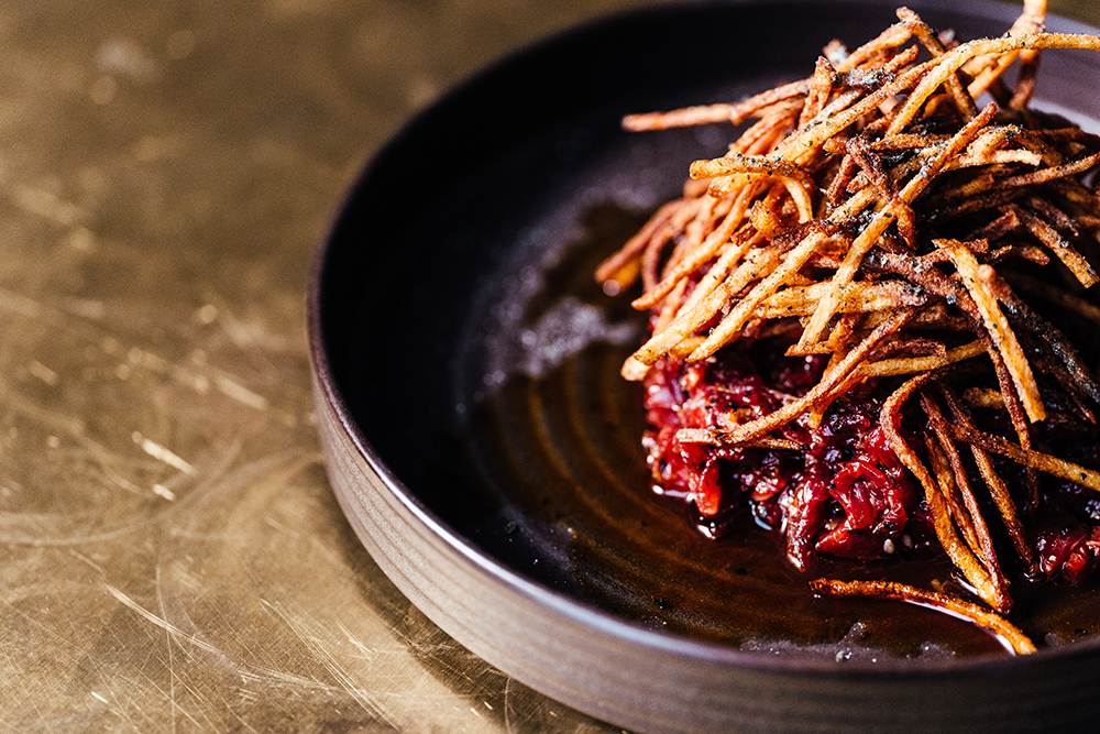 Korean Spiced Dexter Beef Tartare, Straw Chips